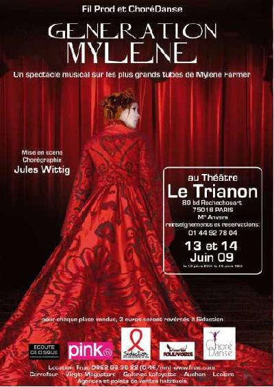 Génération Mylène est un spectacle musical qui revisite la carrière de Mylène Farmer au travers de ses plus grands tubes. Durant près de deux heures, les danseurs de la compagnie ChoréDanse font revivre les plus grandes chansons de Mylène Farmer au public, sur des chorégraphies inspirées par celles que propose Mylène Farmer sur scène, mais intégralement créées par la compagnie.Chant live, décors, costumes, chorégraphies, maquillage, jeux de lumières... ChoréDanse apporte une touche personnelle de part ses chorégraphies et ses tableaux sur scène avec une partie piano-voix-violoncelle. Ce spectacle permet donc aux fans de Mylène Farmer, aux curieux ainsi qu’aux amateurs de danse ou de spectacles musicaux de se réunir autour d’un même show, et de découvrir ou redécouvrir la carrière de l’artiste.ChoréDanse souhaite ainsi développer le paysage culturel parisien, et grâce à cette manifestation, lutter pour une cause d’actualité, le Sida (notamment en partenariat avec Sidaction), tout en réunissant les "Générations Mylène" qui suivent l’artiste depuis une vingtaine d’années.