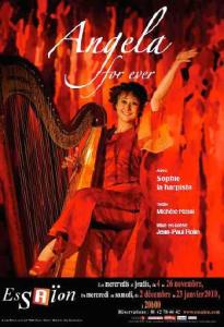 Confiné dans la salle cabaret chaleureuse et au cachet historique du théâtre de l'Essaion, un halo de lumière met en évidence Sophie, seule en scène. Sophie parle, mais à qui s'adresse-t-elle ? Surprise de remarquer la présence du public, la comédienne, ô combien enchanteresse, convie le public à écouter une histoire, une histoire au cachet particulier. Sophie-enfant taquine sa mère d'un subtil caprice, l'ennui. Maman chérie lui présente une harpe, une harpe pour apprendre la musique. Quel étrange instrument ! Sophie intriguée, les yeux médusés, regarde du haut de ses cinq ans l'imposant mastodonte : déjà, il est plus grand qu'elle; et puis, il a des cordes et des cordes, plus que les doigts des deux mains réunies; et même des pédales.C'est décidé, la fillette apprendra à jouer de la harpe... debout. L'ennui, c'est qu'il va falloir donner un prénom à cette nouvelle copine, il faut l'avouer imprévue. Providence, c'est ainsi qu'elle aurait pu s'appeler. In fine, ce sera Angela. Une vocation est née, la musique. Sophie grandit avec la harpe. Ses doigts glissent le long des cordes, de la caisse de résonance s'échappent des airs de trouvère, Bach, Mozart, Haendel. Angela partage la vie de Sophie avec ses joies, ses peines, ses rencontres d'un instant. C'est l'alliance en or d'une artiste avec sa harpe, symbiose musicale pour le meilleur et pour le rire. Sophie, c'est une artiste radieuse, conviviale, géniale, prête à tout pour Angela, jusqu'à vivre un amour fou pour...Angela, tout de bois vêtue, a du corps, une certaine redondance qui met en valeur son col de cygne, ses quarante-sept cordes, sa caisse de résonance, antre des notes de musique classique et de petites chansons. Leur vie se conjugue en chansons, des chansons d'amour que l'artiste dédie à la harpe, des concertos de musique classique où s'invitent régulièrement Mozart, Haendel et La Moldau. La comédienne se fond en une multitude de personnages rencontrés au cours de sa vie. Des personnages haut de forme comme le flûtiste avec lequel elle connait l'amour charnel, à jouir en femme adultère; ou encore avec l'indécente Julie, un robot musicien qui ose rivaliser dans les concours de soliste.Voilà une galerie de portraits qui laissent la harpiste de cire, mais n'en demeure pas moins qu'Ange est lasse, un rien jalouse. Elle reste de bois. La fusion musicale entre Sophie et Angela laisse un débord d'émotion s'installer et envahir le public. La nostalgie s'invite sur scène entre éclats de rires et larmes de plaisir. Un halo de lumière filtré semblable à un clair de lune se pose délicatement sur l'artiste dont les doigts continuent d'enchâsser les cordes à la caisse de résonance d'où Mozart, Haendel et La Moldau laissent échapper un léger murmure d'émerveillement. Cette pièce, ce n'est pas un one woman show. C'est un grand spectacle intimiste, une très belle histoire d'amour joliment contée par Sophie et chantée en cordées par la harpe. Angela et Sophie, c'est un moment de vie unique sur la scène de la vie, côté Seine dans les coulisses de Paris. "Essaion" d'aller voir cette pièce. "Essaiez" et vous serez enchantés !