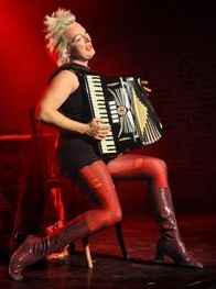 Elle est joyeuse et sympathique, son look est marquant et elle ne se prend pas la tête : c’est Mathilde Baure. Elle est surtout une parolière inspirée dans la veine des VRP, et une musicienne polyvalente de talent. Une petite punkette au visage de clown, l’accordéon sur les genoux comme un ventre de femme enceinte, elle nous invite dans son univers. Un univers poétique, teinté d’humour, de coups, d’histoires de la vie de Monsieur et Madame Tout-le-monde et de personnages comme vous et moi. Quelle fraîcheur !Accompagnée de son accordéon, d’un mini-piano et d’un xylophone, Mathilde nous offre ses compositions. La voix n’est pas exceptionnelle mais elle est suffisante et Mathilde sait s’en servir selon ses besoins.C’est un moment de bonheur que l’on passe en sa compagnie. Avec une vraie personnalité, cette jeune femme, fraiche, nature, sympa et rentre-dedans, joue avec le public. Elle casse le quatrième mur et vit avec nous un concert intimiste. Il nous semble presque être des amis qui assistons à un concert privé ou à une de nos soirées, rituel de chaque fin de semaine.Une chaise et une guirlande lumineuse, voilà la seule scénographie dont use Mathilde Baure. Pourquoi avoir plus, quand elle peut faire imaginer tout en douceur et avec humour, un décor somptueux aux spectateurs. Et s’il y a des problèmes techniques ? Qu’importe ! Mathilde ne se démonte pas. Bien au contraire, elle les exploite et en rit.Cette artiste est une femme d’une grande force avec un bel univers. Elle s’attire la sympathie des gens qu’elle rencontre. Son naturel est sa force. C’est une artiste attachante qui mérite un public plus nombreux pour assister à cette heure de bonheur. A n’en point douter, elle doit être fantastique en artiste de rue. Peut-être le public serait-il davantage au rendez-vous ?