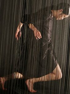 Plexus dérange dès le début. Face à nous, un grand voile noir et un corps... un corps qui respire et convulse. On entre dans son intimité par le son. Puis, le voile tombe, nous voici en son cur, au sein du plexus, "réseau de nerfs ou de vaisseaux". On pénètre dans un univers sombre, quasi-pénitentiaire, dans lequel s’imposent une multitude de fils verticaux. On y observe un corps baloté par ses propres névroses et bousculé par la recherche constante d’une excellence. La vie est là, dans ce battement de cur et de corps. Une vie qui se questionne, se débat et s’élève.