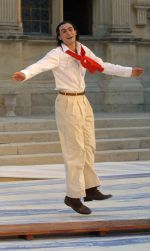 Pourquoi mettre une nouvelle fois en scène Dom Juan, et, qui plus est, le Dom Juan de Molière ? Guy Freixe apporte une réponse simple : parce que c’est un mythe inépuisable, parce qu’aujourd’hui encore, il conserve toute son ambiguïté. Dom Juan est un personnage fascinant car insaisissable. Le metteur en scène l’a compris et en fait une "figure mythique de l’homme moderne" ; c’est, pour lui, un être "profondément ambigu", "adepte du présent et du plaisir" et "conquérant qui brûle tout sur son passage". Voilà pourquoi, dans son spectacle, le héros séducteur semble toujours en état de douce ivresse ; cette ivresse, c’est celle de la vie, c’est le symbole de la jouissance du moment. Hovnatan Avedikian l’interprète à merveille ; il confère au personnage légèreté et élégance. Ses mouvements, chorégraphiés mais empreints de naturel, mettent en relief sa désinvolture, son insouciance et sa satisfaction perpétuelles. La danse qu’il improvise avec les deux paysannes, Mathurine et Charlotte, est un exemple remarquable de son aisance sur scène. La chorégraphie vient alors illustrer l’habileté et la duplicité de son personnage. Face à lui, Jean-Yves Duparc incarne un Sganarelle maladroit, ignorant, superstitieux mais attachant, tel que l’avait conçu Molière. Le comédien réussit parfaitement à faire ressortir le comique de son rôle ; tâche difficile car c’est Sganarelle qui porte à lui seul le farcesque de la pièce. Sa stupéfaction face à l’athéisme de Dom Juan, sa poltronnerie, ses essais de raisonnements pour convertir son maître sont autant d’occasions de rire pour le public.Le comique de Molière fonctionne toujours : les attitudes et le langage des personnages populaires conservent toute leur saveur aujourd’hui. Les répliques de Pierrot (Alain Carnat), ponctuées de "morquenne" et de "testigué", ne manquent pas de faire sourire. Ainsi le versant tragique de la pièce est-il sans cesse désamorcé. C’est tout l’art de Molière d’avoir mêlé habilement les tonalités ; et c’est également l’art de Guy Freixe de l’avoir traduit à la scène. Mais le vrai mérite de ce dernier est d’avoir parfaitement su utiliser les lieux. Jouer un texte du XVIIe siècle dans un cadre qui a accueilli une vie littéraire à la même époque est une chance, bien exploiter ce décor (la magnifique façade du château de Grignan) relève du talent.Saluons donc toute l’équipe technique : décorateurs, régisseurs lumière, costumiers, ainsi que les musiciens. Tous participent à faire de la représentation un moment d’harmonie visuelle et sonore. On est émerveillé par les jeux de lumière sur les murs du château et par l’envolée des draps verts, blancs, s’échappant de plusieurs fenêtres pour constituer le décor. On est abasourdi lorsque, juste avant l’ultime apparition de la statue du commandeur (qui sort du château dans un somptueux costume) tout s’éteint à l’extérieur et que pétaradent des éclairs derrière les hautes fenêtres. On est séduit par les transitions entre les actes : la musique, composée par Bruno Girard (violoniste fondateur du groupe Bratsch), accompagne avec joie les danseurs et figurants qui montent et démontent le décor. Notre regard est happé par ces sortes de mini ballets et l’aspect technique du moment est alors oublié au profit de son esthétisme. Comme par magie, le cadre se trouve changé lorsque la musique cesse et que les danseurs retournent en coulisse.Dom Juan, à Grignan, est une véritable fête des sens où le "festin de pierre" trouve toute sa signification.