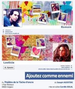 Les festivals d’Avignon se suivent et ne se ressemblent pas forcément. Une première version d’Ajoutez comme ennemi nous avait été présentée l’an dernier. La version 2012 du texte de Joseph Agostini dont on vous recommande aussi le très déjanté Barbarie Land [site] a été, pour l’occasion, retravaillé de fond en combles, sous la direction de Camille Solal avec une nouvelle distribution. Force est de constater que cette mouture s’avère plus aboutie dans sa mise en scène.Adeptes des réseaux sociaux, dont l’incontournable Facebook et ses trente millions d’amis… potentiels, cette pièce est faite pour vous. Dès l’entrée dans la salle de la Tâche d’encre, les deux comédiens, de chaque côté de la scène, sont déjà à l’uvre, les yeux rivés sur l’écran (Vive les Mac !), tout occupés à pianoter sur leur clavier ou écouter de la musique. Quand on vous parle d’addiction à internet ! Il peut bien tout arriver (y compris le public qui s’installe), rien ne peut les ébranler...À jardin, Laetitia, la trentaine, mariée et déjà deux enfants, en a déjà ras-le-bol. Sa vie ressemble à un grand chantier de déménagement, à l’image de ces cartons entreposés tout autour d’elle. Ses deux gosses, représentés sous forme d’icônes (un garçon et une fille) sur deux cartons, sont posés comme deux paquets, justement, qu’elle trimbale ici ou là. Quant à son couple, n’en parlons pas : il est carrément à reconstruire. A tel point qu’elle pense sérieusement à faire ses cartons. Pour aller voir ailleurs. Et cet ailleurs est peut-être derrière son écran d’ordinateur. Dans l’intimité de sa chambre (ou de son bureau, à vous de voir), alors qu’on imagine le mari regarder, seul, la télé dans le salon, elle feint de finir un dossier urgent du travail… Mais c’est pour mieux "tchatter" avec cet inconnu virtuel qui répond au nom de Romain. Compliqué, tout ça ? "Sur Facebook, on ne peut pas être marié et trouver ça compliqué, il faut choisir !"...À cour, c’est le domaine de Romain. Avec ses cheveux longs et ses lunettes pas du tout à la mode, il a l’allure d’un "geek" qui passe son temps à surfer sur Facebook. On apprendra plus tard qu’il est auto-entrepreneur ce qui lui laisse tout le loisir de surfer sur Internet pour chercher chaussure à son pied... à défaut de trouver son propre style vestimentaire. On le verra, au fil de la pièce, affublé d’un improbable t-shirt à l’effigie de Superman ou de Batman, d’un jean défraîchi ou d’un vieux short d’un goût douteux. Des fripes qu’il sort d’un carton rempli à ras bord, et qu’il enfile tout au long du spectacle, comme autant d’avatars différents. Mais il devra encore faire pas mal de pompes, à l’avant-scène, pour façonner davantage sa silhouette... Et puis, son défaut de prononciation (il a comme un cheveu sur la langue…) n’arrange pas les choses. Bref, question relationnel, mieux vaut aller sur Facebook. Pas facile, n’est-ce pas ? Mais, comme il dit, "sur Facebook, on ne peut pas être célibataire et trouver ça compliqué, il faut choisir !"...Les deux comédiens n’échangent que verbalement : ils disent ce qu’ils écrivent sans même se jeter un regard. Une performance sur une scène de théâtre ! En dehors de leurs discussions, on assiste à leurs interrogations intérieures, ou on les surprend dans leur quotidien : Laetitia avec son mari ou ses enfants qui n’interagissent avec elle qu’en voix off ; Romain avec son pote au téléphone. Chaque scène étant ponctuée d’une virgule musicale rythmée qui fait penser à celles des mini-séries de la télé, style : Un gars, une fille... sur Facebook pour le coup. Un nouveau concept ? Mais ne vous y trompez pas, le texte, drôle dans son ensemble, est aussi empli d’émotions, et trouve parfaitement sa place sur une scène de théâtre par sa dimension philosophique. Dans ce jeu de séduction par profils interposés, les deux comédiens ont le talent de rendre leur personnage attachant tout en mettant en lumière certains travers de notre société. Un spectacle original qu’on ne saurait trop vous conseiller, surtout si vous êtes adeptes des "LOL", des "pokes", des "MDR" et autres "Biz" avec un… ou deux Z. Avis aux festivaliers branchés, " ajoutez-le"... à votre agenda !