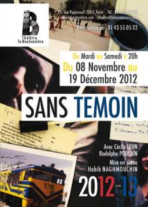 Paris. Vendredi 16 novembre 2012. La météo locale rime avec hiver. Un vent froid s'engouffre dans les escaliers de la station de métro Voltaire. En surface, les gens, cols relevés et bonnets tirés jusqu'à plus maille, allongent le pas. Il n'est pas difficile de lire l'expression des larmes dans les yeux réclamant un peu de chaleur. Rue Popincourt, peu de monde. Derrière les fenêtres donnant sur rue, les rideaux calfeutrent l'accouplement intime de la nuit et du froid.Rendez-vous est donné au n°25 de la même rue. Sur la grille d'entrée, se devine un panneau affichant Théâtre de la Boutonnière. Bref dédale dans une allée pavée séparant deux rangées de maisons et d'immeubles d'une autre époque. Au bout à gauche, une porte s'ouvre sur un intérieur cosy. Deux jeunes filles en sortent et s'activent à l'extérieur dans le montage d'une table en bois surmontée d'un parasol imposant. D'un geste assuré, elles disposent carnet à souche et flyers sur la table et affichent spontanément l'expression de leur joie de vivre. Il est 19h45 et le côté anecdotique de la situation mérite d'être porté noir sur blanc. C'est Paris.Bienvenue au Théâtre de la Boutonnière. Ancienne fabrique de boutons de nâcre, située à deux bottes de ce lieu, La Bastille. Cet endroit insolite ne vient pas s'ajouter à la longue liste des salles de spectacle de la Capitale. Habib Naghmouchin l'a pensé profondément axé sur l'humain et la liberté d'expression. Le Groupe de créations théâtrales y a installé son quartier d'hiver en été. Il suffit d'allumer l'interrupteur sous le porche pour comprendre qu'ici, le sens du mot théâtre ne se limite pas à sept lettres.Un escalier débouche sur une pièce distribuant des dimensions généreuses du plateau aux rangées de banquettes surélevées et confortables. La proximité scène-public ne déloge pas au concept voulu par son fondateur éponyme, un personnage à l'apparence atypique qui inspire respect et mystère, confiance et exigence. D'avouer qu'il s'entoure de personnes des plus attachantes et de leur présence, l'ambiance s'agrémente de rires et de complicité.Connaissez-vous un théâtre à Paris qui propose de dîner avec l'équipe artistique à l'issue de la représentation en le lieu même ? Habib Naghmouchin propose, les gens disposent. Le Théâtre de la Boutonnière est une prose.Parlons de l'adaptation de la pièce de Sofia Prokofieva mise en par Habib Naghmouchin. La scénographie, l'expression de la sobriété représentée par les éléments composant le décor. Une table en formica, deux chaises du même placage, un fauteuil en simili cuir, un lampadaire articulé d'un coup de girafe. Somme toute, l'intérieur d'un modeste appartement cloisonné par les silences d'une existence morne et dérangée par les chuchotements de la bouilloire. A l'extérieur, le passage des trains alterne avec le va-et-vient de l'ascenseur. La femme vit de peu, les souvenirs ont sculpté des failles dans sa solitude bousculée par l'écoute de quelques airs de musique classique. Le temps suspend son vol, mais pas les regrets. Son ex-compagnon rentre dans l'appartement comme s'il n'avait jamais quitté l'endroit. Sa présence manifeste indifférence et défiance. Que vient-il chercher ou rechercher ?La narration s'écoute sombre et articulée d'images renvoyant à un passé douloureux. Une vie partagée entre deux personnages simples et filés dans le sens de l'ourlet. Il n'y a pas de place pour un once de bonheur, exceptés les arrêts sur écran projetés sur le mur de la cuisine. Croira qui voudra que les rigueurs de l'existence s'effacent dès la tombée des premières neiges, in situ. L’austérité se détache comme pour accentuer par opposition les travers de l’homme se confondant dans la mécanique de l’amour qui fut leur au début de leur histoire. Le désaccord se définit au pluriel car aucun sujet de conversation ne prête à l’entente. La profondeur des relations se perçoit dans les silences provoqués, dans les crises de nerfs, dans la violence des propos. La complexité des rapports est subtilement interprétée par Cécile Lehn et Rodolphe Poulain. Les regards prolongent l’intimité blessée d’une relation passionnée et troublée par le reflet du doute et de la méfiance dans le miroir de leur inconscience. Leurs jours sont devenus des nuits et l’inverse avéré dès la déviance des sentiments.L’étrangeté du texte n’est pas sans rappeler certaines pièces de Harold Pinter. La plume strangule les émotions vives car la notion de bonheur n’a pas le droit de citer. La mise en scène de Habib Naghmouchin diffuse en un même lieu l’interrogation de la trinité amoureuse entre l’homme, la femme et l’enfant physiquement absent et maternellement oppressant. Pièce jouée à deux comédiens, le public prête serment d’écouter le verbe déclencheur d’algorithmes sentimentaux où les méandres de la vie se lacent et s’entrelacent à l’infini.Sans témoin, une pièce à découvrir absolument au Théâtre de la Boutonnière.