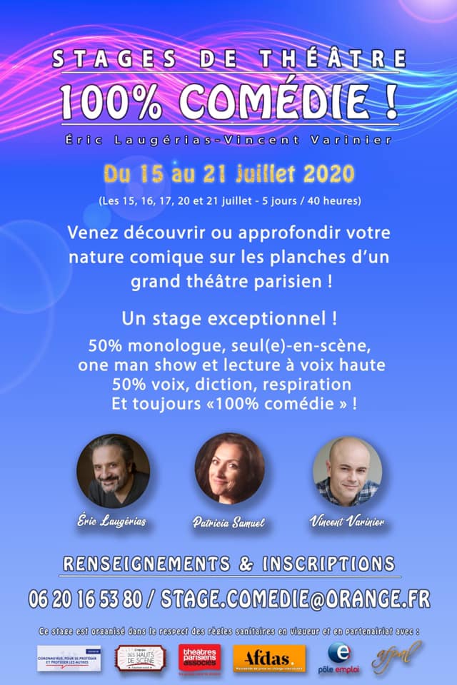 Suite au succès du stage de mai. Avec Nicolas Vaude, Patricia Samuel et Viviane Marcenaro nous vous proposons, à Paris en octobre, un nouveau stage Feydeau/Labiche-Tchekhov. Il durera deux semaines (70h), les prises en charge individuelles AFDAS, Pôle Emploi, sont possibles. Renseignements stage100paris@gmail.com ou 0780677876 #stage. - STAGES, ATELIERS