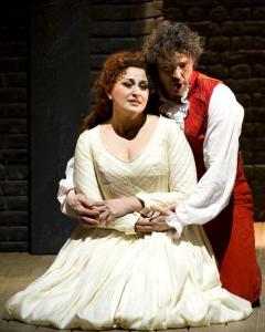 S’il y eut une révolution vériste, ce fut d’abord une révolution théâtrale et même littéraire. L’Andrea Chénier de Giordano, à la fois fresque historique (d’une justesse et d’une concision admirables) et drame humain, d’une sensibilité, d’une intensité bouleversantes voit deux amants pris dans les rouages de l’histoire et que fait plier la force du destin... D’un lyrisme parfois sublime mais aussi souvent irritante, la musique de Giordano, pas toujours savante mais d’un effet garanti sur les âmes simples ou éthérées, pour peu qu’on entre dans le jeu, fait s’enflammer un discutable hymne à la fraternité, à l’amour et à la mort libératrice. A l’opéra, la vérité (historique) est souvent ailleurs...Question pour un champion : qui serait capable aujourd’hui de citer un seul vers du poète André Chénier, guillotiné en 1794, à seulement 31 ans, pour s’être élevé contre les excès du régime de la Terreur, et illico-presto adoubé comme précurseur des Romantiques ? Question subsidiaire : qui se souvient encore, en dehors du cercle restreint des musicologues, du compositeur italien Umberto Giordano, par ailleurs compositeur à succès (Fedora...), consacré en son temps par les plus grands, Caruso et Toscanini en tête ?Créée à l’Opéra Royal de Wallonie voici sept ans, la production présentée en ce mois de février à l’Opéra de Monte Carlo, tente de répondre à ces deux énigmes simplistes. La mise en scène de Claire Servais déploie un joli livre d’images dont la lecture n’engendre pas une once d’ennui, se révèle drôle parfois (charrette des corps guillotinés, tribunal révolutionnaire aux allures d’arènes sanglantes) mais culmine heureusement dans une scène finale au pathos suffocant... Dans ce tableau historique sanguinaire, la flopée de petits rôles secondaires (qui ne sont en aucun cas de simples silhouettes) demeure bien des éléments essentiels du drame. Tout cela est animé avec conviction, dans un style cinématographique de belle facture grâce aussi aux costumes (un rien vus) de Christian Gasc, les décors judicieux de Dominique Pichou et les éclairages brumeux d’Olivier Wéry.Remplaçant qui vous savez, le madrilène Enrique Ferrer restera bien la révélation de la soirée. Voilà un ténor qui risque bien de succéder, s’il en a l’intelligence, à ses plus illustres compatriotes ibères. Un sex-appeal indéniable, une ferveur presque animale, un timbre solaire, d’irrésistibles longues phrases haut-tenues et ardentes... qui ne font en rien regretter la défection commerciale de l’artiste "sicilien" initialement affiché. Ses duos avec Micaela Carosi (Maddalena fragile et résignée) sont purement et simplement électrisants. Plaisir également de retrouver Marco di Felice qui chante un Gérard tout en muscle, simplement parfait, à la fois prince et rustre, bon et méchant, humain, tellement humain.