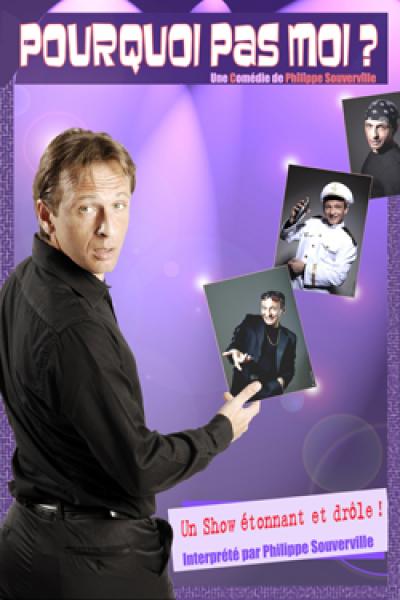 Dans un petit café-théâtre, un showman est commandité par Monsieur Benamou pour faire rire son public. Après un irrésistible casting, Philippe Souverville réussi ce défi. Ça commence par une foule en délire qui n’'attend qu'’une seule chose… : rire aux éclats. Le public est alors conquis. Pendant plus d’'une heure, Philippe Souverville incarne différents personnages avec une belle esthétique et beaucoup de générosité. On sent qu’'il aime la scène, la danse et l’'interactivité avec le public.Avec un humour décapant et une justesse des mots, il parodie les centres de fitness, un prof de salsa étonnant, un strip-teaseur…... et bien d’'autres personnages aux multiples surprises. Il va même avec humour dénoncer le milieu des fameuses usines à produire du rire, le café-théâtre. Comme il le dit si bien, les directeurs des temples du rire sont des agriculteurs : …ils ramassent le blé !Même si le spectacle est pétillant et dynamique, on retrouve les clichés scénographiques et humoristiques du one man show/stand-up. Mais contrairement à certains shows des grandes stars du rire, Pourquoi pas moi ne souffre d'’aucune longueur, ni de redondance comique. Je n’'aurais qu’'un seul mot à dire, si vous avez une bouche, trouvez des oreilles… : Philippe Souverville mérite le bouche à oreille.