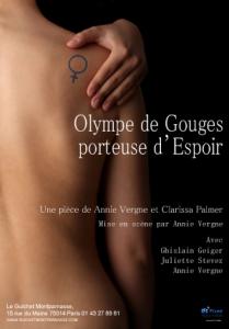 qui les interprète toujours avec spontanéité et générosité. Ghislain, c'est l'élégance même du comédien dans le théâtre de création.La mise en scène d'Annie Vergnes sensibilise la perception d'un personnage trop méconnue de l'histoire de France, Olympe de Gouges. La transposition de deux tableaux confrontant une parenthèse de l'histoire de France à la société actuelle est un concept intelligent et servi avec la rigueur documentaire et textuelle d'une pièce écrite pour faire connaître une Olympe humaniste, une lueur intellectuelle scintillant à l'ombre des "grands hommes". La réalisation de cette pièce se veut motivée et inspirée, libre et citoyenne. Olympe de Gouges Porteuse d'espoir, une magnifique création à découvrir au Guichet Montparnasse.
