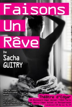 Le mari, la femme et l’amant... Voici un trio que le théâtre français aime mettre en scène et qui excite toujours autant les papilles des spectateurs ! Ce couple à trois est d’autant plus intéressant lorsqu'il passe sous la plume de Sacha Guitry. Faisons un rêve est une petite pépite du genre qui traverse divinement bien le temps et les époques. Séduction et mensonge se mélangent avec harmonie et donnent naissance à des répliques, à des traits d’esprit légers et fins comme seul Guitry sait les écrire. Et c’est toujours un pur plaisir que de pouvoir les entendre.C'est dans ce petit théâtre situé près de la gare Montparnasse que cette jeune compagnie composée de trois comédiens un peu fous, dynamiques et plein de vie, revisite avec modernité cette charmante pièce d’une heure. Une vraie surprise ! Des costumes d’époque, peu de décor, une mise en scène astucieuse et moderne... De quoi suivre cette intrigue simple, en profitant de ces répliques délicieuses. Les touches modernes apportées ne détonnent aucunement avec l’esprit de Guitry. Au contraire, elles l’enrichissent et montrent à quel point cet auteur est dans l'air du temps. Alors, n’hésitez pas plus ! Allez-y ! Et ensemble, "faisons un rêve".