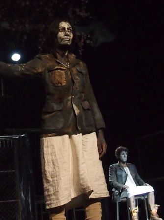 "Je dessine mes spectacles avant de les réaliser", dit Jacques Allaire. Il lit, il oublie, il rêve, il dessine, il relit, interroge ses dessins, choisit, découpe, compose. "Les Damnés de la terre, c’est le résultat de ce processus. Une succession de sanguines déclinées sur toute la palette des gris et sépias. Des visions oniriques fragmentées, violentes, ancrées dans un espace indéfini en constante mutation.Le premier tableau, c’est un plateau quasi nu, un camp de transit peut être, ou son cauchemar. Un peu de terre, de hautes cages grillagées en fond de scène, une baignoire juste devant, des murs gris et nus à cour et à jardin. Un homme et une femme, noirs tous les deux, ou grimés en noir, vêtus de sous-vêtements blancs salis. Ils profèrent la harangue de celui qui est aliéné pour sa couleur de peau. Puis ils s’enterrent. Un autre homme noir, sa harangue, sa négritude. Une autre femme, noire du moins, c’est cela qu’elle dit, sa chevelure masquant son visage elle soliloque, va et vient, tête et corps perdus. Autre tableau : le mur côté cour s’abat à grand bruit, l’espace se métamorphose en camp militaire, ou champ de bataille, ou cellule de torture. Les six comédiens, deux femmes, quatre hommes, sont des soldats, ou des officiers, ou des tortionnaires ou tout à la fois. Ils sont des éclats d’êtres aux prises avec l’aliénation. L’autre mur, côté jardin, s’abat à son tour. Les hautes grilles du fond de scène basculent, elles deviennent les lits d’un hôpital désaffecté que les comédiens installent dans un parfait silence. Les scènes, les tableaux plutôt, se succèdent avec la logique des rêves fiévreux. Ils ne répondent à aucun fil narratif. Ils existent par un système d’échos, de récurrences, d’analogies. Leur unité, c’est le thème obsédant des aliénations liées à la colonisation.Les textes sont extraits des uvres de Franz Fanon (1925-1961 ), médecin psychiatre, militant FLN et écrivain, né antillais, mort algérien : Peau noire masques blancs (1952, Point Seuil) ; L’an V de la révolution algérienne (1959), Les Damnés de la terre (1961, Maspero). Les comédiens sont magnifiques, la mise en scène superbe. "(…) J’essaie de faire du théâtre au nom du peuple, tentant de rendre la parole spoliée, piétinée de notre propre humanité. Quelque chose qui puisse rendre à nos âmes son tremblement et à notre intelligence sa conscience", confie Jacques Allaire. En ces temps où le racisme et la bêtise s’affichent, un spectacle hautement nécessaire.
