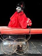 Donc, on oublie l’Espagne, nous sommes en Turakie, pays imaginaire aux accents russes, peuplé de marionnettes et d’animaux marins. Lorsqu’un disque en vinyle de l’opéra de Bizet est péché dans les fonds océaniques, crevettes, homards et langoustes turakiens prennent saxophones, contrebasses et violons et nous en rejouent les airs les plus connus. On se surprend alors à fredonner plus d’une mélodie face à de belles séquences orchestrales filmées. Ces animaux sont des petites marionnettes fabriquées par la compagnie du Turak théâtre, mises en scène puis filmées comme un orchestre. Entre ces intermèdes vidéo, nous assistons à des scènes interprétées par les comédiens et les marionnettes qu’ils manipulent à vue ; l’histoire de Carmen est ainsi restituée dans ses grandes lignes, même si ces poupées aux facies étranges nous entraînent bien plus loin que l’Andalousie et se permettent de réinventer la fin de l’intrigue. Devant un décor modulable, de bric et de broc, notre imagination s’envole au fil des scènes. Le lit, retourné, défait, renversé devient prison. Les meubles empilés et la petite lanterne placée au sommet représentent finalement un phare. Une table à repasser avec une housse tachetée et deux cornes rumine comme un taureau ; et bien d’autres objets chinés par Michel Laubu et ses acolytes sont détournés de la sorte. On est donc sans cesse surpris, au gré des changements de décor ; on est même émerveillé par l’inventivité déployée sous nos yeux.