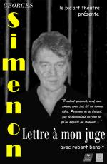 Lui qui, à 41 ans, ne croyait pas au coup de foudre venait de découvrir la beauté de l’amour-passion et de la tendresse. Cette révélation bouleversera son existence et tout ce qu’il croyait de l’amour ou de la sexualité. Désormais, dans ses romans aussi, Georges Simenon en parlera avec moins de froideur. Lettre à mon juge est né de cette passion fulgurante qu’il était en train de vivre avec Denyse, avec celle qui deviendra sa seconde épouse. L’écriture de ce livre le taraudera pendant douze mois. Ce n’est que quelques semaines avant sa mort, qu’il offrait à Robert Benoit l’autorisation d’adapter et d’interpréter sur scène, ce roman qui lui tenait tant à cœur. Ce geste, qui est considéré par tous ceux l’ont connu comme une attitude rare dans la vie de cet auteur, a permis au comédien de présenter son spectacle au Festival Off d’Avignon devant un public enthousiaste.La cause est entendue : crime passionnel Charles Alavoine, respectable médecin de la Roche-sur-Yon est en prison ; il a assassiné une femme. Mais au-delà du verdict il reste la réalité humaine... Dans une longue lettre adressée à son juge d’instruction, peu après sa condamnation, Alavoine retrace les étapes du chemin qui l’ont conduit au meurtre. Certaines rencontres ne sont-elles pas trop fortes pour un caractère timide et soumis ? La crainte, la jalousie, le confinement de la vie provinciale et du rôle social, l’explosion des pulsions trop longtemps contenues... Ces thèmes obsédants de l’univers romanesque propre à Simenon trouvent ici une expression lucide, dépouillée, quasi désespérée.