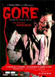 Les Monthy Pythons de l’horreur. Sanglant et cinglant, absurde et décalé, Gore vous plongera dans un univers d'une rare débilité. Amateurs du genre ou novices, tout a été réuni pour le plaisir des sens : effets spéciaux, bande son stridente et toutes sortes d’objets tranchants. Véritable festival de tripes et d’hémoglobine. Plutôt sado, plutôt maso, on a pensé a tout. En tout bien, tout honneur, évidemment...