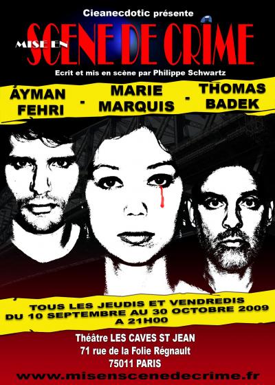 Qui n'a jamais rêvé de commettre un meurtre parfait, de réussir une scène de crime sans failles, sans indices, sans traces ? Les trois personnages de la pièce (Mise en) Scène de crime vont réunir leurs forces et leurs ressources pour relever le défi. Mais aucun d'entre eux n'est exactement ce qu'il paraît, et le crime n'est peut-être pas aussi théâtral qu'on pourrait le croire. Est-ce vraiment un jeu ? Ne serait-ce pas plutôt une sombre machination, un piège tendu à une victime trop consentante, qui fera une sortie de scène définitive ?Les spectateurs qui assisteront à (Mise en) Scène de crime devront départager les faux innocents des vraies victimes et s'assurer que l'envers du décor ne sera pas beaucoup plus noir que l'intrigue qui se déroule sur scène.