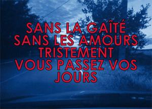 Sans la gaité, sans les amours, tristement vous passez vos jours