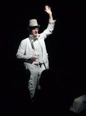 En costume blanc, un élégant dandy, Andersen lui-même, se présente et nous invite à entrer dans un espace énigmatique.