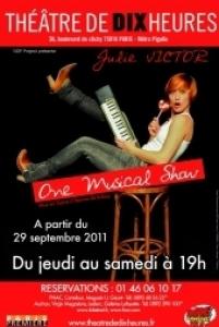 Le Théâtre de 10 Heures, poussez la porte au 36 boulevard de Clichy et prenez le temps de lire ce joli propos situé au-dessus du comptoir. Hommage est rendu à la nouvelle génération d’artistes, les artisans du rire, du sketch, de l’humour. Un théâtre dont la vocation est d’accueillir de jeunes talents doués pour faire rire le public. Noëlle Perna, Franck Dubosc, Tano, Omar & Fred, Sophia Aram s’y sont essayés et la liste n’est pas exhaustive. La recette a bien pris, aujourd’hui leur nom prête à rire avant même de voir leur nouveau spectacle.Les musiciens s’installent à leurs instruments et donnent le la avant l’entrée de la comédienne. Jérémy Jouniaux au piano a accompagné Lara Fabian, Phil Collins et Serge Lama. Tandis que Dominique Mabille et ses guitares-basses électro-acoustiques ont joué pour Lara Fabian, Michel Delpech, Maurane. Des références de qualité pour ces musiciens qui synchronisent leurs meilleures notes pour le seul-en-scène de Julie Victor.C’est une voix chaude et jazzy qui remplit la salle. Portant une robe à ravir, Julie Victor monte avec l’élégance des chanteuses de blues sur scène. Le ton est donné à ce one-woman-show musical car le public l’attend avec impatience.Un quart d’heure plus tôt, il ne l’avait jamais vue, excepté en photo sur les affiches et les flyers. La pétillante rousse a plus d’un tour dans sa voix. Elle mime la gentille Céline fébrile à ses débuts et pleurant autant que les eaux du Saint-Laurent peuvent contenir de larmes. S’ensuivent une parodie de Susan Boyle avec une brève biographie cinglante, un clin d’il cadencé au jazz allemand, une revue d’actualité écolo avec les amis de la terre, les chinoiseries exagérées des nouveaux comiques chinois, un à-propos dénonçant la désinvolture des producteurs du showbiz.Julie enchaine les changements de rôle avec une aisance déconcertante et trouve le temps de se raconter un peu. A l’âge de 8 ans, elle a griffonné sur un p’tit bout de papier le mot "chanteuse". Elle revendique avec fierté ses origines de Basse-Normandie.Sketch et humour accompagnent ce flot de paroles déferlées entre deux chansons. Même si Julie Victor possède la voix la plus nutritionnelle de Paris, elle a trouvé sa voie dans le music-hall. Artiste à part entière, elle a le don de faire des tours de passe-passe dans les changements d’interprétations et de situations. Le micro vibre quand elle chante, un peu variété, beaucoup jazz, passionnément lyrique. L’accompagnement musical est divin, un raffinement de tous les airs qui s’apprécie à la hauteur de la prestation présentée.Julie Victor est vive et cristalline, surprenante et enthousiasmante, rieuse et blagueuse.
