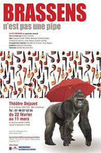Au théâtre sans prétention, la compagnie GRRR chante les refrains de G.B. à sa façon. Une soirée cabaret en révérence à Georges Brassens, lequel de Sète à soixante ans a promené sa pipe et sa guitare sur les chemins de pierre et de terre de Montmartre en Bretagne. Poète porté en Hérault avec ses chansons fleurant la gouaille. Des refrains éternels repris par des générations de gamins canailles, lesquels deviendront les copains d'abord. Le vent balayant les grands discours, l'ami Georges s'exprimait avec des mots simples et sincères. Des mélodies reprises sur le boulevard du temps qui passe. Les mélodies de Brassens sont inoubliables comme sa célèbre moustache.Un quatuor qui ne fait de tort à personne ouvre le spectacle en annonçant qu’au village sans prétention, les brav's gens n'aiment pas que l'on suive une autre route qu'eux... En meneuse de revue, Susana Lastreto, élégamment vêtue dans une robe made in music-hall et le chapeau abat-jour fièrement porté pour l’extravagance, interpelle le poète-chanteur par ses initiales, G.B. Incursion dans le répertoire d’un artisan de la chanson française pour lequel les trompettes de la renommée claironnent toujours les amours d’antan des amoureux des bancs publics.GRRR , les quatre lettres d’une compagnie, qui rugissent pour le plus grand plaisir des croquantes et des croquants. Etat d’esprit libertaire, imagination fertile, création synonyme de liberté, Susana Lastreto et ses joyeux compères s’amusent à inventer des spectacles où l’irrévérence ponctue d’un point d’exclamation la correspondance entre la loufoquerie et le bonheur. Des créations montées de toute pièce autour et avec dérision, la racine carrée du burlesque. L’adaptation des textes se fond dans des mises en scène légères et subtiles. L’impertinence se mêle à la convenance, une chorégraphie de facondes librement exprimées.Annabel de Courson et Hélène Hardouin s’emparent de la scène comme des midinettes dans leurs robes à paillettes. Un brin coquines, un rien complices, elles ne font pas dans la religieuse qui va à confesse. Chanson tendresse, la langue caresse le triangle des désirs avec l’interprétation de quatre vingt quinze pour cent des femmes s’emmerdent en baisant. Une jouissance à l’ouïe.La chanson pour l’auvergnat réveille les instants nostalgiques au coin du cantou. Les voix portent l’émotion vive de Georges Brassens à chaque fois qu’il chantait cette mélodie dont l’écho résonne encore aujourd’hui. Annabel et Hélène, deux jolies colombines sur la route aux quatre chansons. Susana anime un cabaret participatif dans lequel le public se laisse aller au jeu de la réplique du con de la chanson quand on est con, on est con. Au paradis des artistes, Brassens continuent de fédérer des liens sociaux sur terre. Ses textes suscitent toujours autant d’intérêt et de passion, répliqués de père en fils, de mère en fille et à suivre.François Frapier mime à merveille G.B. Point d’artifice, juste une guitare, une pipe, une chaise sans assise de quoi poser le pied, et le voilà grattant les cordes et prêt à fredonner des paroles extraites de son talent d’improvisateur. Histoire d’amuser le quand dira-t-on pour car la concurrence est déloyale. François Frapier glisse deux ou trois piques politiques et Susana de lui rappeler que G.B. y faisait rarement allusion dans ses chansons.Doucement, le temps passe. Il n’y a pas d’amour heureux, même pour un coin de paradis sous le parapluie. Susana et François forment un couple touchant à météo variable. Jorge Migoya et sa contrebasse ne font qu’un, un corps qui compose une musique de l’instant inspirée auprès de l’arbre qui rend heureux. Les partitions de Jorge sont limpides comme l’eau de la claire fontaine.Les chansons de G.B. flottent dans la très belle salle du théâtre Dejazet. Le public n’est pas de bois car la compagnie GRRR n’a pas cassé sa pipe pour cette première. La mise en scène de Susana Lastreto, c’est une chanson d’amour mêlée de tendresse, interprétée par des artistes charmés d’humour et d’hardiesse.Brassens n’est pas une pipe, une poésie musicale en hommage au chanteur de Sète qui a vécu entre la rue Didot et la rue de Vanves.