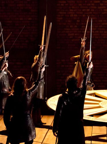 Le jeu de mots est facile mais, tant pis, osons-le : ce Merlin nous a "enchantés". Il s’inscrit dans un vaste projet mené par le TNP de Villeurbanne et le TNS (Strasbourg), envisageant de mettre en scène tout le cycle du Graal. Le premier opus, Joseph d’Arimathie, a été créé au TNP en juin 2011. Merlin l’enchanteur est donc le deuxième volet de cette gigantesque entreprise théâtrale qui se poursuivra à la saison prochaine, au TNP toujours, avec Gauvain et le Chevalier Vert. A la base, un texte : le Graal théâtre, écrit par Florence Delay et Jacques Roubaud, publié chez Gallimard en 2005, qui récapitule toute l’histoire du Graal, de la Table Ronde, du roi Arthur et de ses chevaliers, source littéraire, presque mythologique, inépuisable. A la mise en scène de ce texte, deux artistes : Christian Schiaretti, directeur du TNP, et Julie Brochen, directrice du TNS. Pour interpréter les figures mythiques que sont Merlin, Vivianne, Arthur, Guenièvre et les autres : les comédiens des deux institutions de Villeurbanne et Strasbourg.C’est donc un travail collectif qui nous est livré avec ce Merlin l’enchanteur, et la collaboration a été féconde : le résultat est absolument magnifique. La scénographie nous plonge dans l’univers onirique et mystérieux du royaume de Logres : jeux de clair-obscur, fumée diffuse, musique de fond qui rappelle les temps lointains évoqués... Le décor, pourtant très sobre, contribue parfaitement lui aussi à la magie du spectacle : de grands panneaux de bois peints coulissent et dévoilent tantôt une salle de château, tantôt une forêt, symbolisés par des éléments simples, tels que des planches qui tombent du ciel. L’ensemble est très harmonieux et très beau.Très justement interprétés par des acteurs tous remarquables (à commencer par Jean-Claude Leguay en Merlin), les personnages du cycle arthurien nous emmènent avec eux dans leurs aventures extraordinaires. Le texte contemporain, avec quelques anachronismes qui ne sont pas sans rappeler le Sacré Graal des Monty Python, n’est pas étranger non plus à notre enchantement : à la fois fidèle aux textes anciens (anonymes ou écrits par Robert de Boron) sur le fond, modernisé sur la forme, parsemé d’un humour qui parle au spectateur d’aujourd’hui, ce texte est accessible à tout le monde. Il fait souvent sourire, parfois éclater de rire et il remet en mémoire les grands épisodes de la Table Ronde étudiés à l’école. Instruire et amuser en même temps, c’était l’idéal des classiques, il est atteint ici par Christian Schiaretti et Julie Brochen.