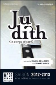 Howard Barker se réapproprie l’histoire biblique de Judith, cette veuve qui, pour sauver son peuple Israël, décapite le général Holopherne après l’avoir séduit. Dans une langue puissamment rythmée par l’obsession de la mort et l’emprise du désir, ciselée par une rationalité qui tend à distancer les personnages de leurs actions, mais ponctuée par des saillies triviales et crues où soudainement leurs pulsions sont mises à nues, le dramaturge anglais écrit une héroïne ambivalente, réellement troublée par l’ennemi dont elle s’apprête à trancher la tête, et dont elle héritera de la cruauté.La scénographie épurée de Chantal de La Coste, dont l’harmonie dissymétrique et la nature du sol pourraient évoquer un jardin zen, invite le spectateur à un voyage méditatif. Malgré une esthétique délicate et la pertinence de la retenue dans le traitement du jeu des passions, cette mise en scène ne parvient à exhaler ni les saveurs du désir, ni l’odeur de la mort.Dans l’Holopherne d’Hervé Briaux, le flegme transparaît plus que la mélancolie, et il ne peut ainsi nous faire trembler pour Judith et la servante. Il nous a manqué particulièrement de sentir l’attirance entre Judith et Holopherne, d’autant plus que c’est cette attirance qui va jeter les protagonistes dans un chaos émotionnel. Les comédiens réussissent cependant à nous faire partager leur intelligence du texte.