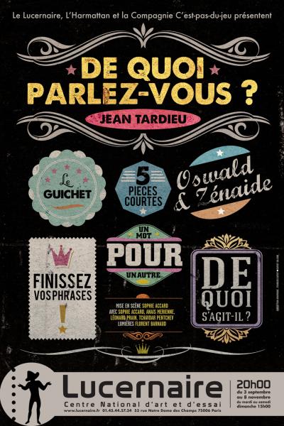 Cinq pièces courtes comiques écrites par Jean Tardieu : cinq pièces comiques, décalées, surprenantes ou terrifiantes alliant toujours dérision et poésie ;