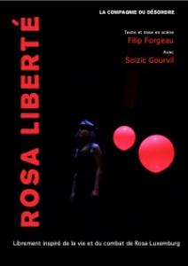 Soizic Gourvil devient la Rosa de toutes les libertés, elle s'insurge contre ceux qui marchent à l'envers, elle s'assoit dans la boue sociale, elle donne la main aux femmes et aux enfants qui pleurent un père injustement condamné, elle jette une pierre dans la nuit noire. La peur, elle ne connaît pas, elle marche la tête haute et le poing levé, elle endure l'insupportable, elle ne tombe jamais. Elle parle une langue universelle, une langue qui s'accroche au fil de la vie quand la liberté d'expression est bafouée, une langue qui s'écrit à l'encre noire dans les textes et se répand rouge sang dans la rue. Soizic Gourvil montre rigueur et exigence dans l'interprétation de Rosa Liberté, elle lutte à ses côtés dans le souvenir et le présent.