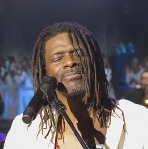 Un duo sensible féminin attire toute notre attention tandis que le chœur se forme autour des musiciens. De sa voix incroyablement grave et éraillée Emmanuel Pi Djob entonne le premier gospel, c'est une voix chargée et profonde. D'un seul corps, à l'unisson, le chœur lance ses premières réponses, et sans qu'on s'y attende, une vague mélodieuse et bouleversante nous submerge ! Et pour parfaire cette ambiance émouvante, James Carles entraîne les choristes dans une rythmique corporelle dansée qui finit de nous envoûter !