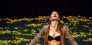 Il y a cette femme, seule, sur un plateau jonché de confettis dorés. Vous, vous entrez dans une fête,