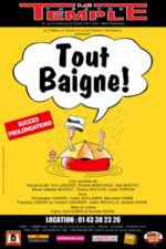 Dans une maison en Touraine, Yann Joël et sa femme Marine sont sur le point d'avoir un enfant. Mais dehors, la météo fait des siennes, et le niveau de l'eau est en train de monter. Par un concours de circonstances, le couple va se retrouver bloqué par les intempéries avec un touriste venant d'un camping avoisinant, un couple d’amis en crise, ainsi que l'épicier du village. Tous vont tenter de se sortir de cette situation critique, avec pour mission supplémentaire de ne pas dévoiler à la jeune femme enceinte ce qui se passe réellement dehors, et éviter ainsi un accouchement prématuré.A l'extérieur de cette petite villa les éléments se déchaînent... A l'intérieur aussi ! Réunis puis bloqués par les inondations, six personnages que tout oppose vont devoir cohabiter dans l'adversité. Du comique de situation à la drôlerie des personnages, Tout Baigne ! nous entraîne dans un rythme effréné où tentent de cxister ces six personnages.Tout Baigne ! se caractérise véritablement par un humour digne héritier du café-théâtre, par son rythme enlevé et ses situations riches de rebondissements, le tout servi par des personnages croustillants et cruels.A sa création, la pièce a tenu l'affiche de plusieurs théâtres parisiens (Théâtre Grévin, Spendid St Martin, Café de la Gare, Palais des Glaces) durant trois années consécutives, puis a été adaptée pour le cinéma sous le titre homonyme.